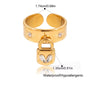 Bold yet romantic, the Locked in Love Ring is a statement of modern femininity and timeless affection. Crafted from 18K gold-plated stainless steel, it features a sleek band adorned with delicate zircon stones and a heart-shaped crystal padlock charm, symbolizing enduring love and personal strength.