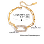 The Aurora Link Chain Bracelet embodies elegance with a modern edge. Crafted from 18K gold-plated stainless steel, this bracelet features elongated rectangular links connected by a sparkling pavé crystal centerpiece, capturing the light with every movement.