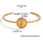 Chic and effortlessly modern, the Gold Royal Coin Twisted Bangle redefines minimal elegance. Crafted from 18K gold-plated stainless steel, it creates a bold yet balanced silhouette that complements any outfit. The cuff style adds a refined touch, blending functionality with timeless style.